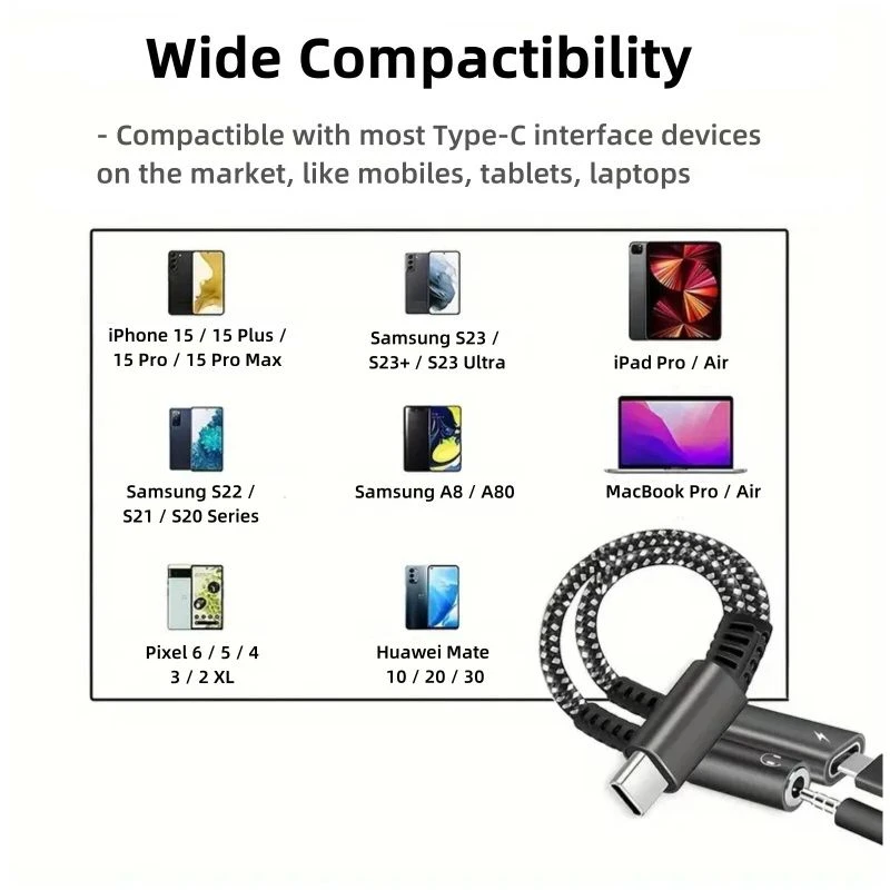 Enjoy music, calls, videos, and gaming while charging your device at the same time. This 2-in-1 USB-C to 3.5mm Audio + Charging Adapter is designed for modern smartphones and laptops that no longer include a headphone jack.
