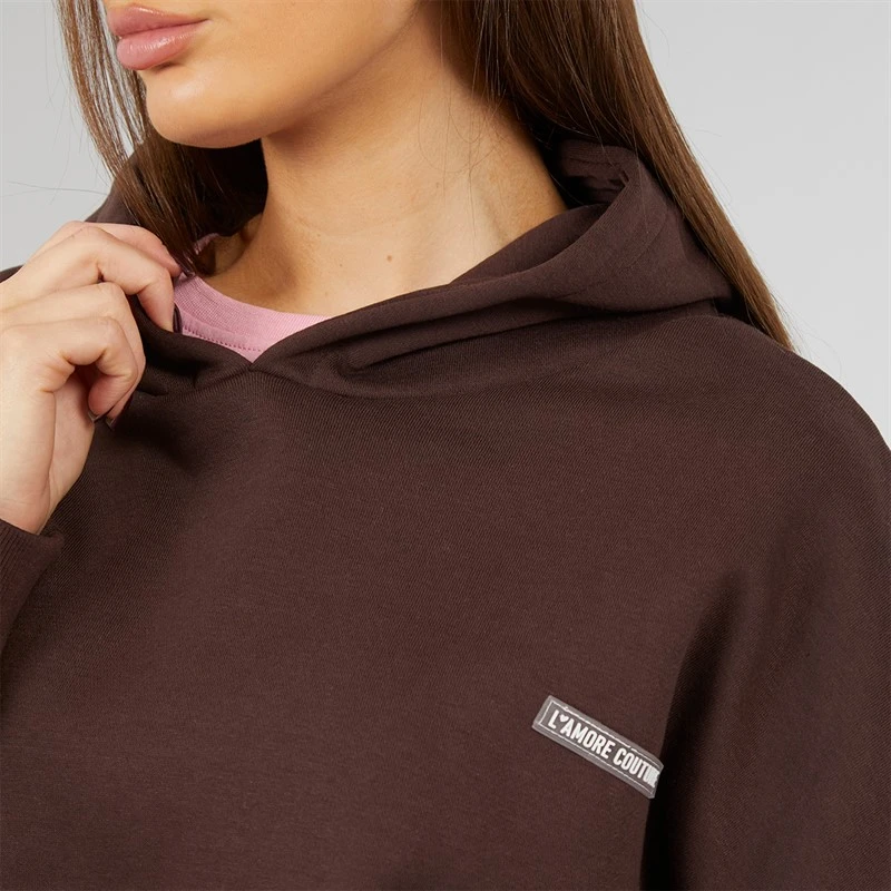 The loose fit offers easy movement and laid-back styling, while the rubberised L’amore Couture logo adds a bold, contemporary finish. A lined hood, ribbed cuffs and hem, and clean straight hem complete the look, making it perfect for casual days, lounging, or off-duty outfits.