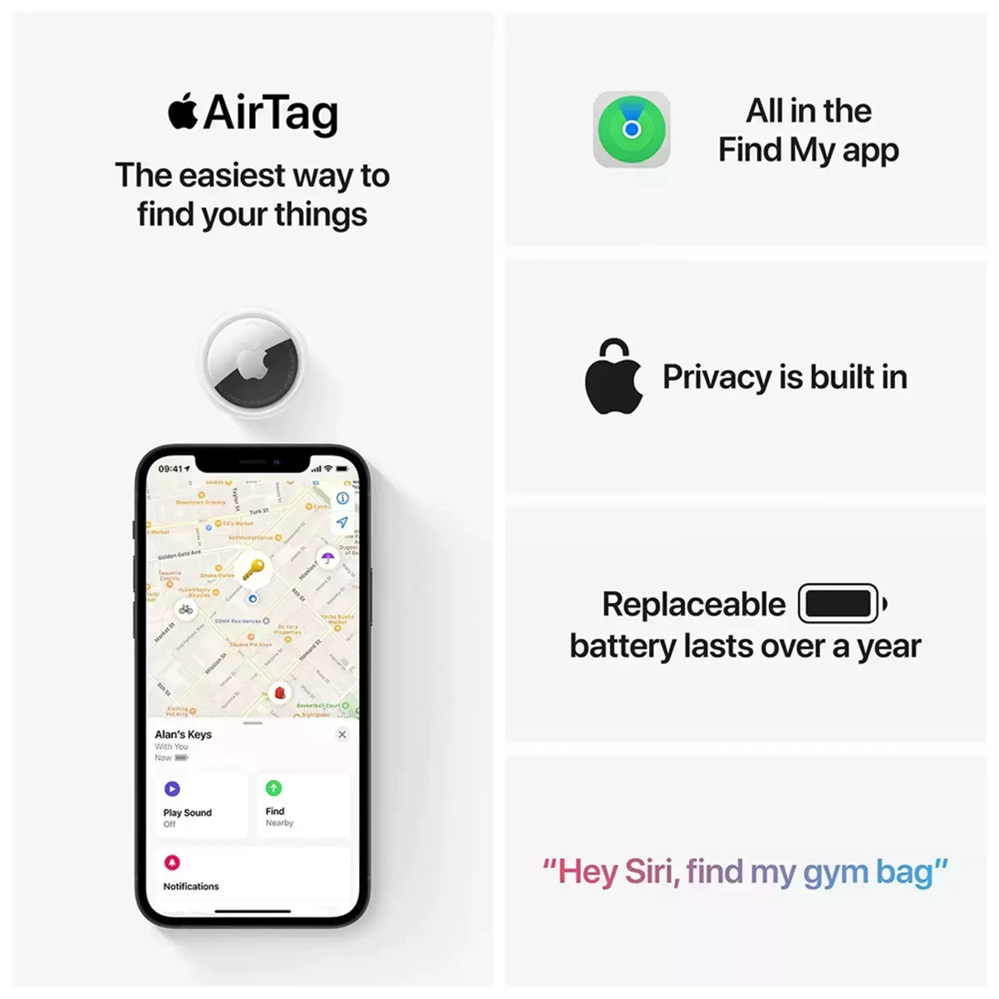 AirTag is an easy way to keep track of your stuff. Attach one to your keys, slip another one in your backpack. And just like that, they’re on your radar in the Find My app. AirTag has your back.