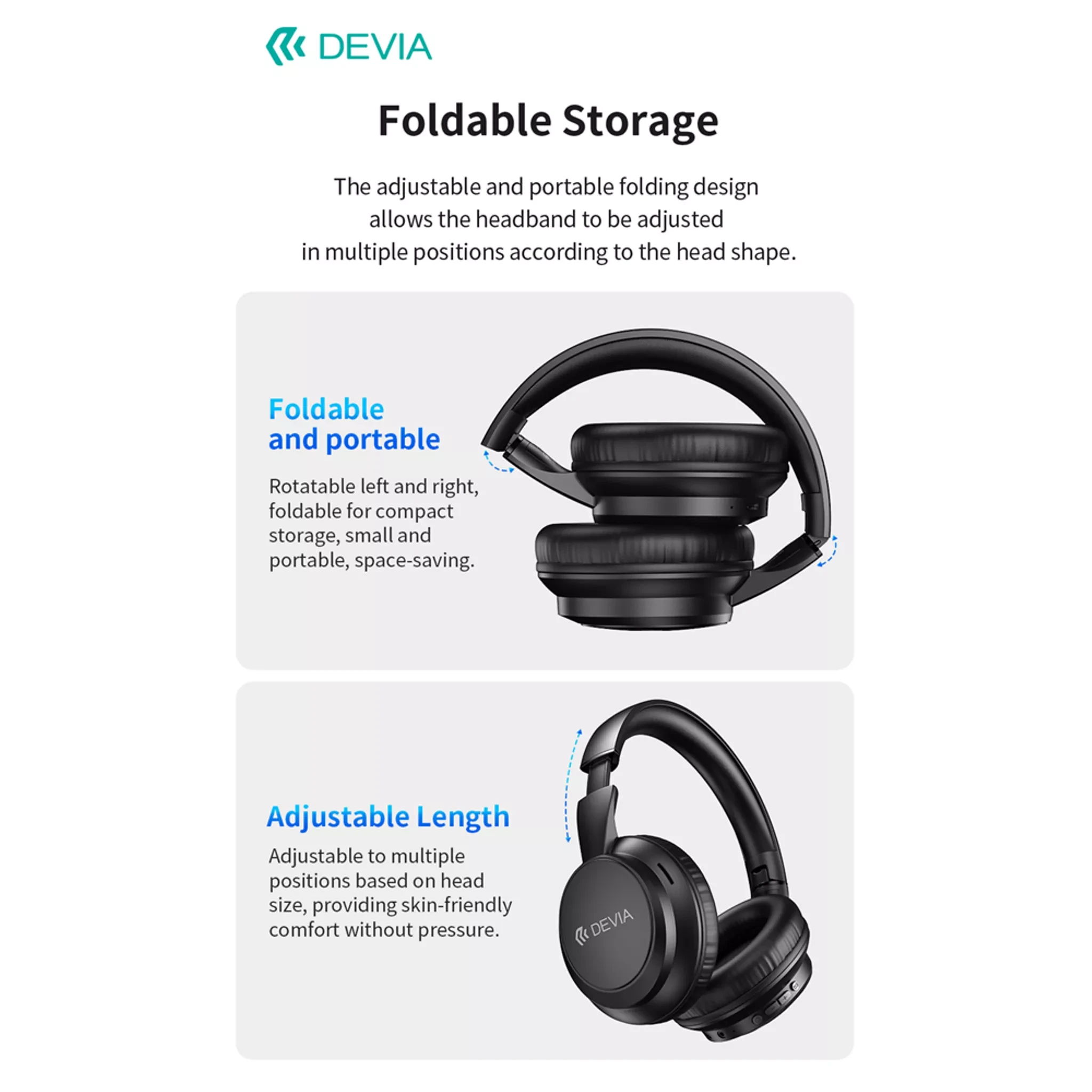 The Devia Lite1 delivers clear, high‑definition audio in a lightweight, foldable design built for everyday listening and on‑the‑go convenience. Combining modern Bluetooth 5.4 connectivity with long battery life and a compact foldable frame, the Lite1 is engineered for commuters, students, and anyone who wants reliable sound without bulk.